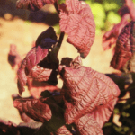 - Листя: Велике, гофроване, хвилясте та округле. Навесні та влітку воно має багатий бордово-червоний колір, а під осінь вибухає яскраво-червоними відтінками.