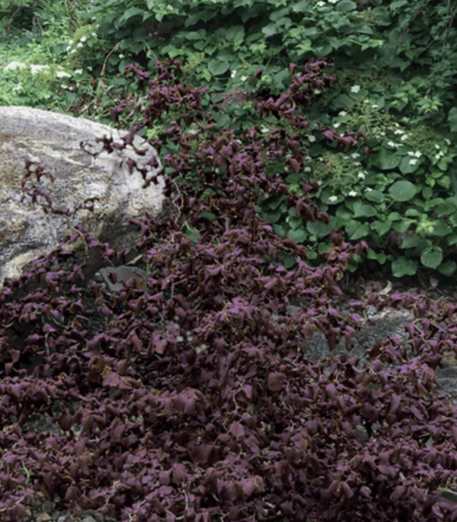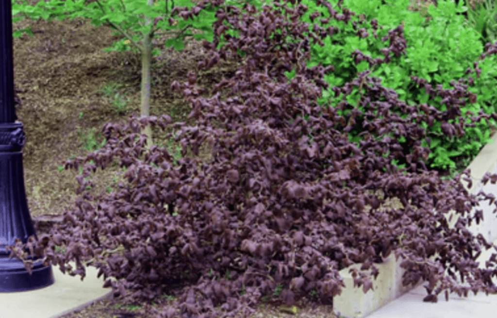 - Листя: Велике, гофроване, хвилясте та округле. Навесні та влітку воно має багатий бордово-червоний колір, а під осінь вибухає яскраво-червоними відтінками.